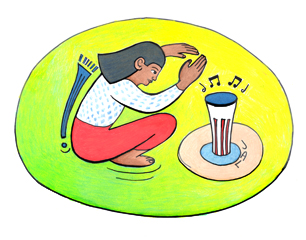 Sharpie pen, micron pen and colored pencil on 11x14" bristol board, (some digital alteration in placement of musician).