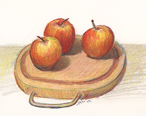 ![]() Joan Ann Lansberry, Three Apples, 2019, colored pencils... Roughly 10x7 inches... |