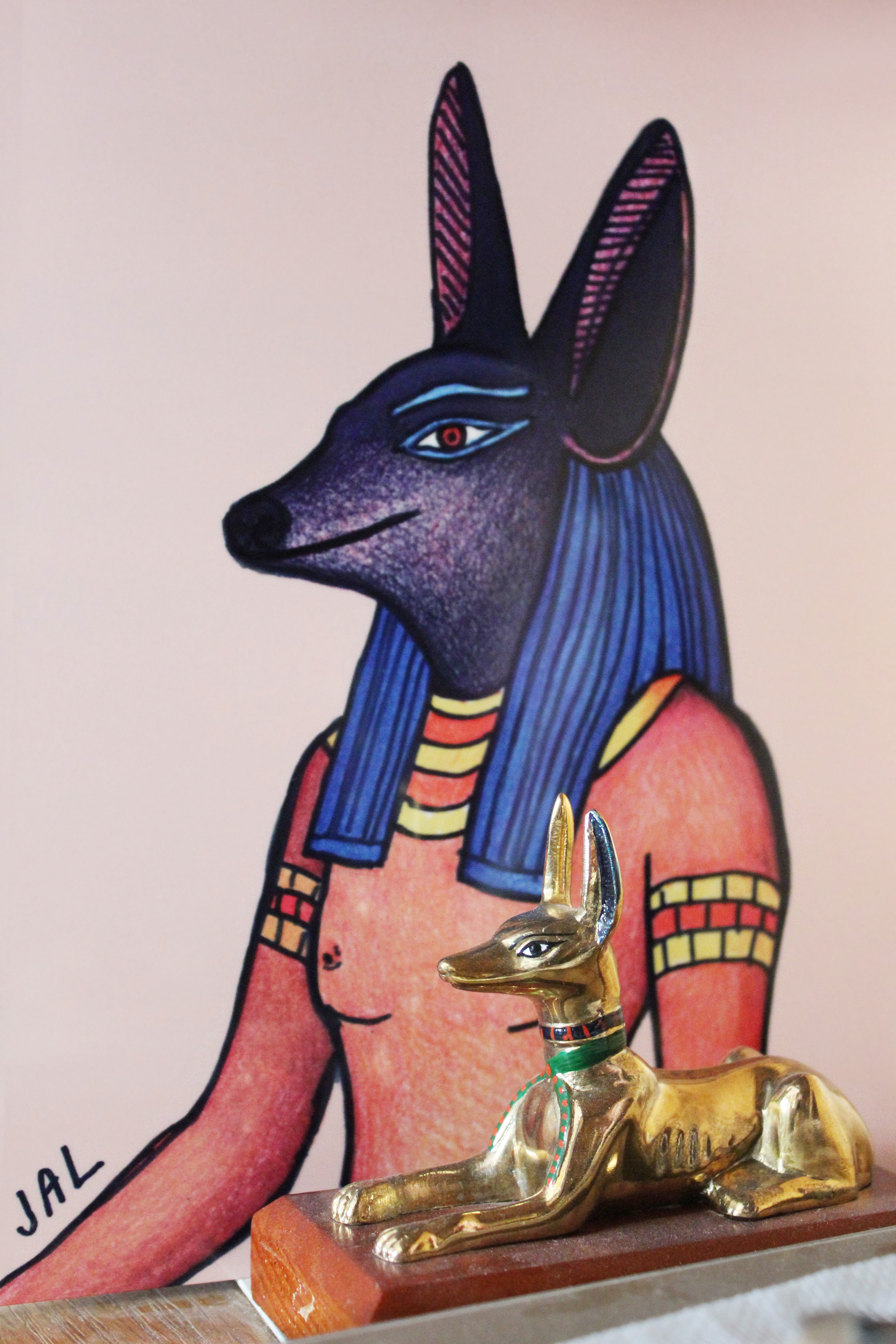 And there he is, in a metal print, with a statue of Yinepu (Anubis)