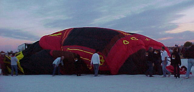I learned this balloon is indeed heavy, for it weighs 850 pounds! It takes 160,000 cubic feet of hot air to fill this beauty!