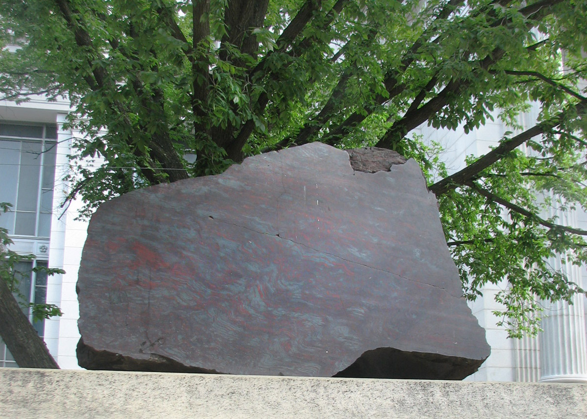 I saw this huge iron ore meteorite when we visited the Natural History Museum in Washington D.C. in 2007. I wasn't able to find out how much it weighs, but I did learn that it's "7 x 5 feet in size" (2.1336 m x 1.524 m). Anything made of mostly iron that big has GOT to be pretty darn heavy! Not quite measuring up on the scale compared to this rock, the huge AQUAmarine crystal from last week's theme would also be rather hefty as well.