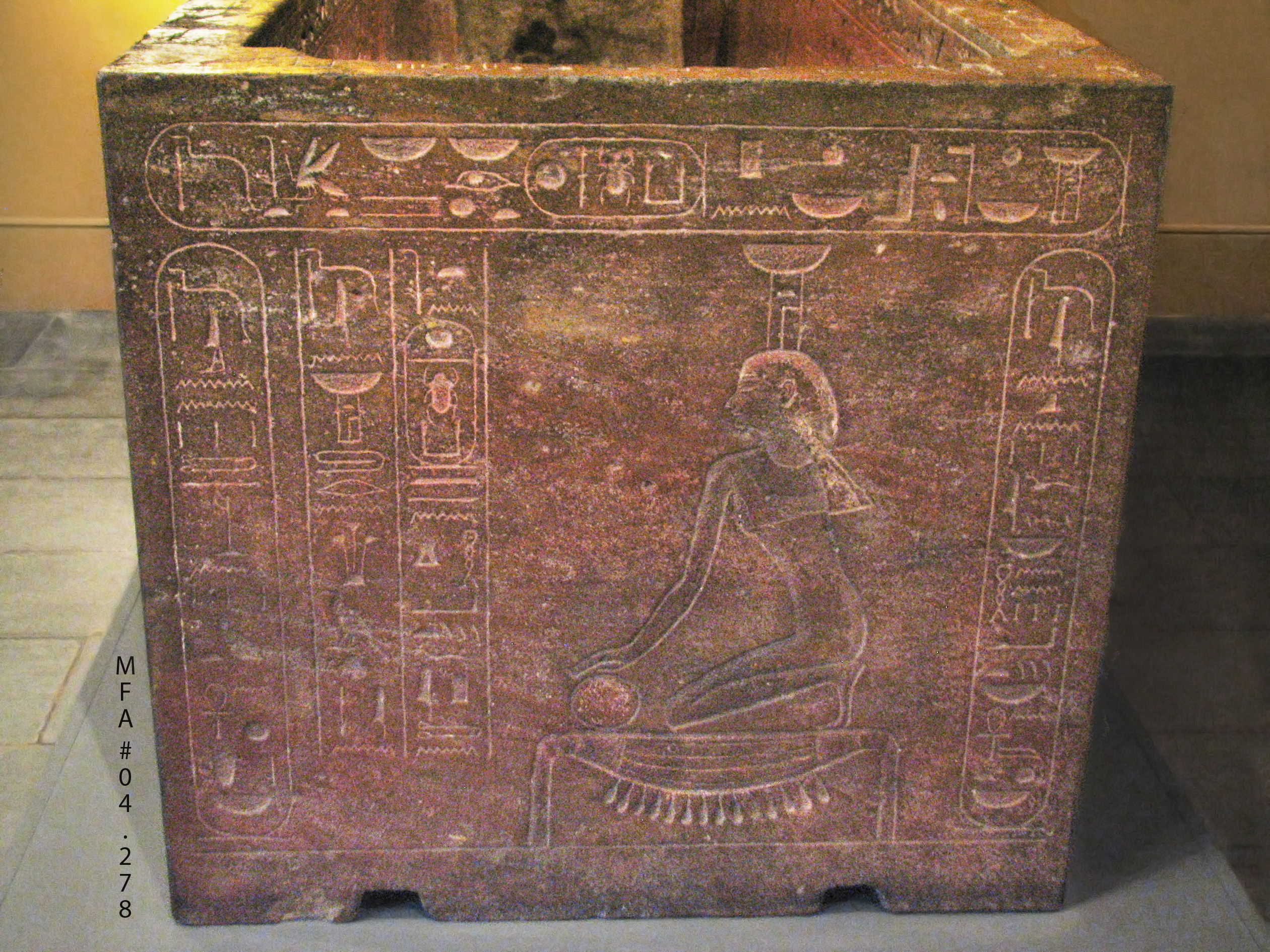 *(Actually, this isn't the only sarcophagus outside of Egypt. There are two others. "The other two belong to Seti I (made of alabaster; in Sir John Soane's Museum, London) and Ramesses III (made of red granite; lid in the Fitzwilliam Museum, Cambridge, box in the Louvre Museum, Paris." (Footnote in "New Light on the Recarved Sarcophagus of Hatshepsut and Thutmose I in the Museum of Fine Arts, Boston", by Peter Der Manuelian and Christian E. Loeben)