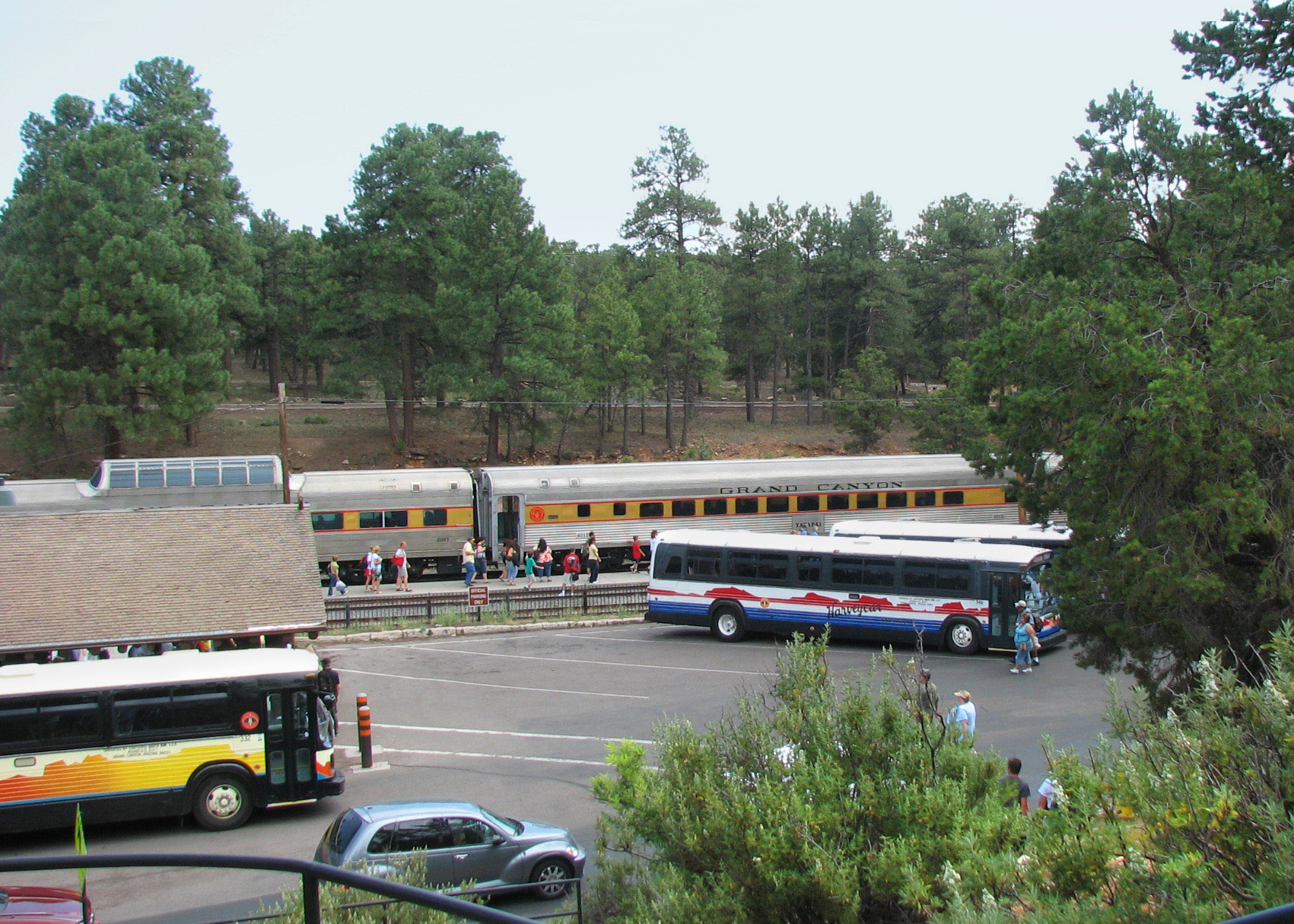 (From Journal entry, August 4, 2008 The train is a fun way to get there. Everyone did their part to be as entertaining as possible. Musicians came into each train coach and played and sang for us. One had a guitar and a mouth harp attached to a device that held it in front of his mouth so he could play both in songs featuring trains. Another had a banjo and sang. Another at the trains return got our friendly hostess Lorraine dancing as he played and sang an old Beatles tune, "Feelin' Groovy". |