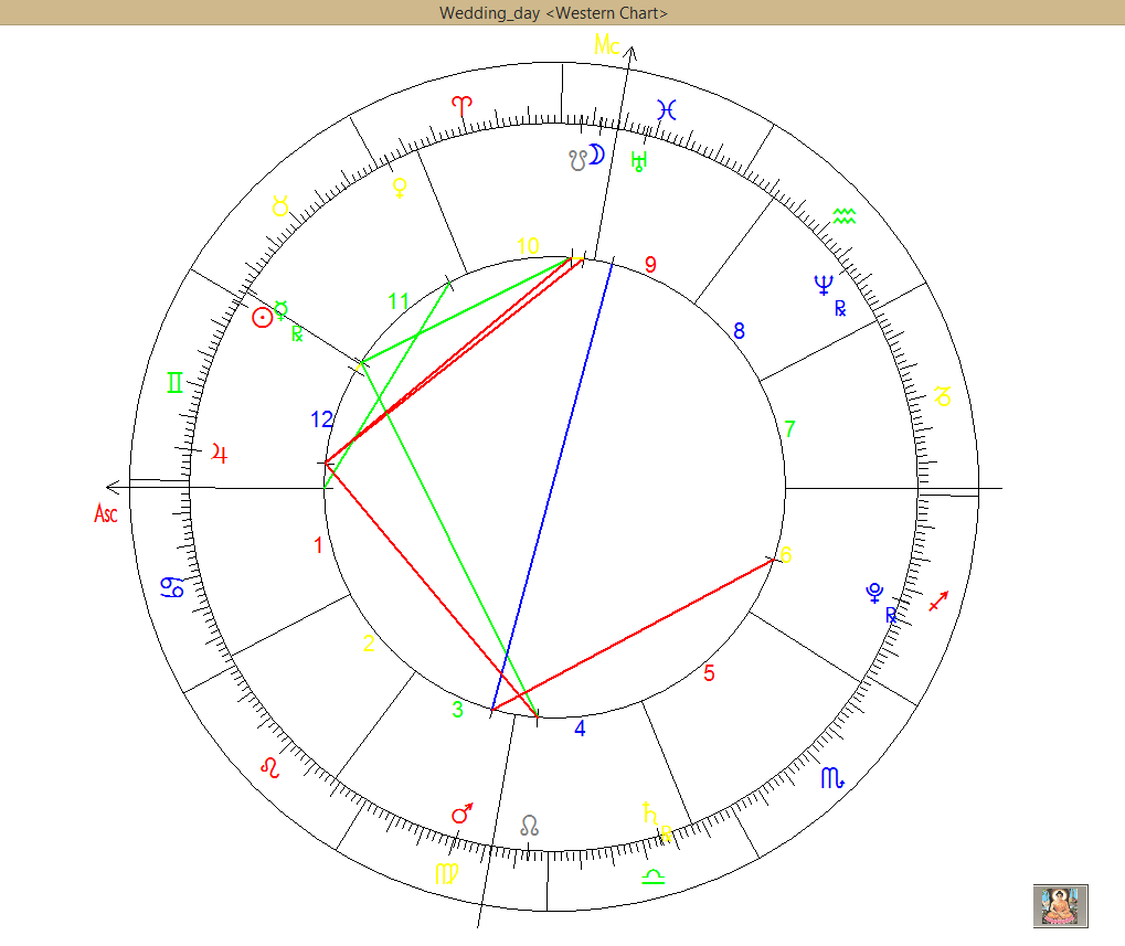 There is a trine with Sun, Mercury and lunar node; a sextile with Mercury and moon; and a Venus/Jupiter sextile. The 'blue