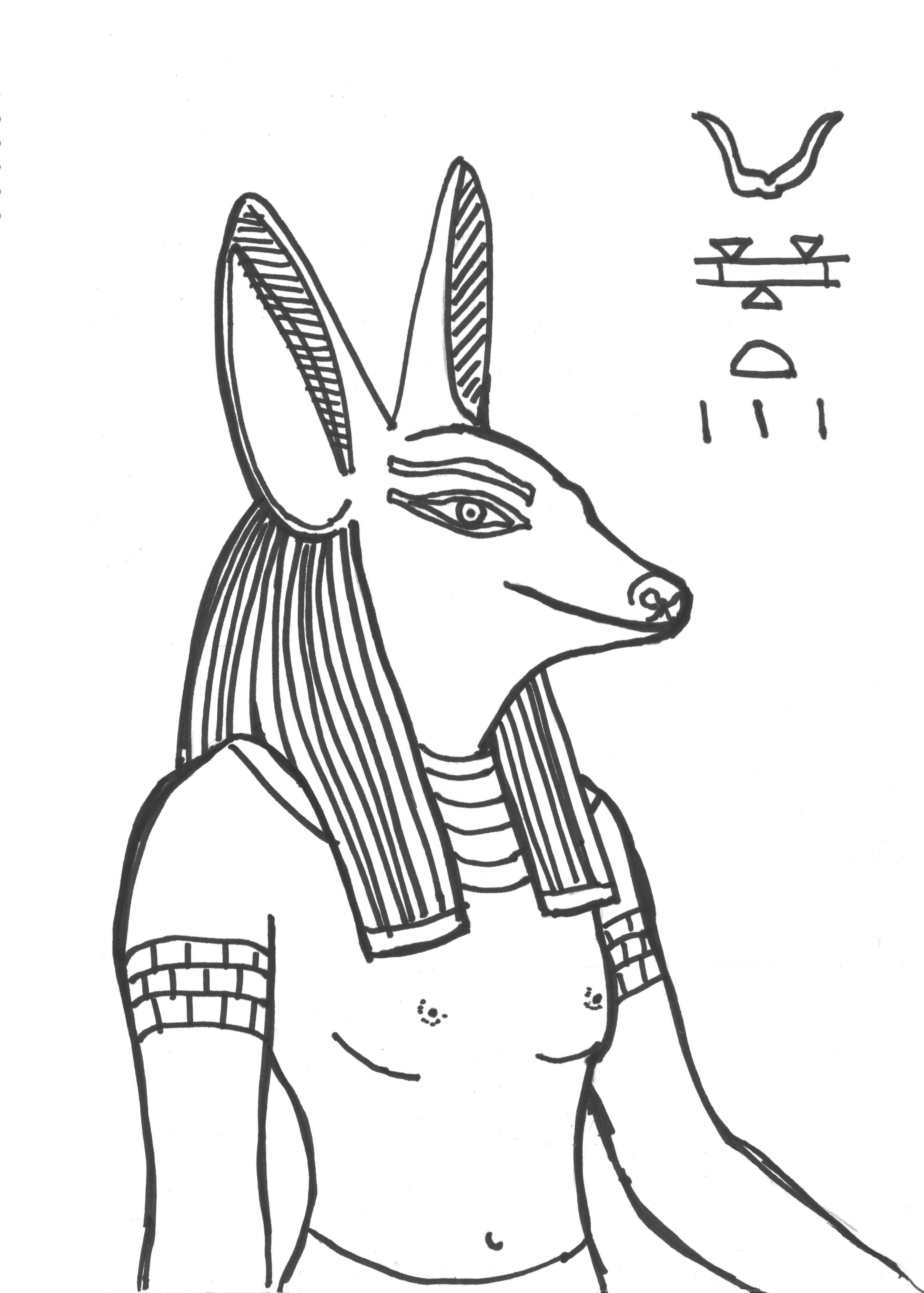 I got inspired by a statue at the Walters museum. Okay, the statue is of Anubis (Anpu), but someone knowledgeable thought the two cobras suggested Wepwawet. But a zoom in on the glyphs, and it's Anpu.