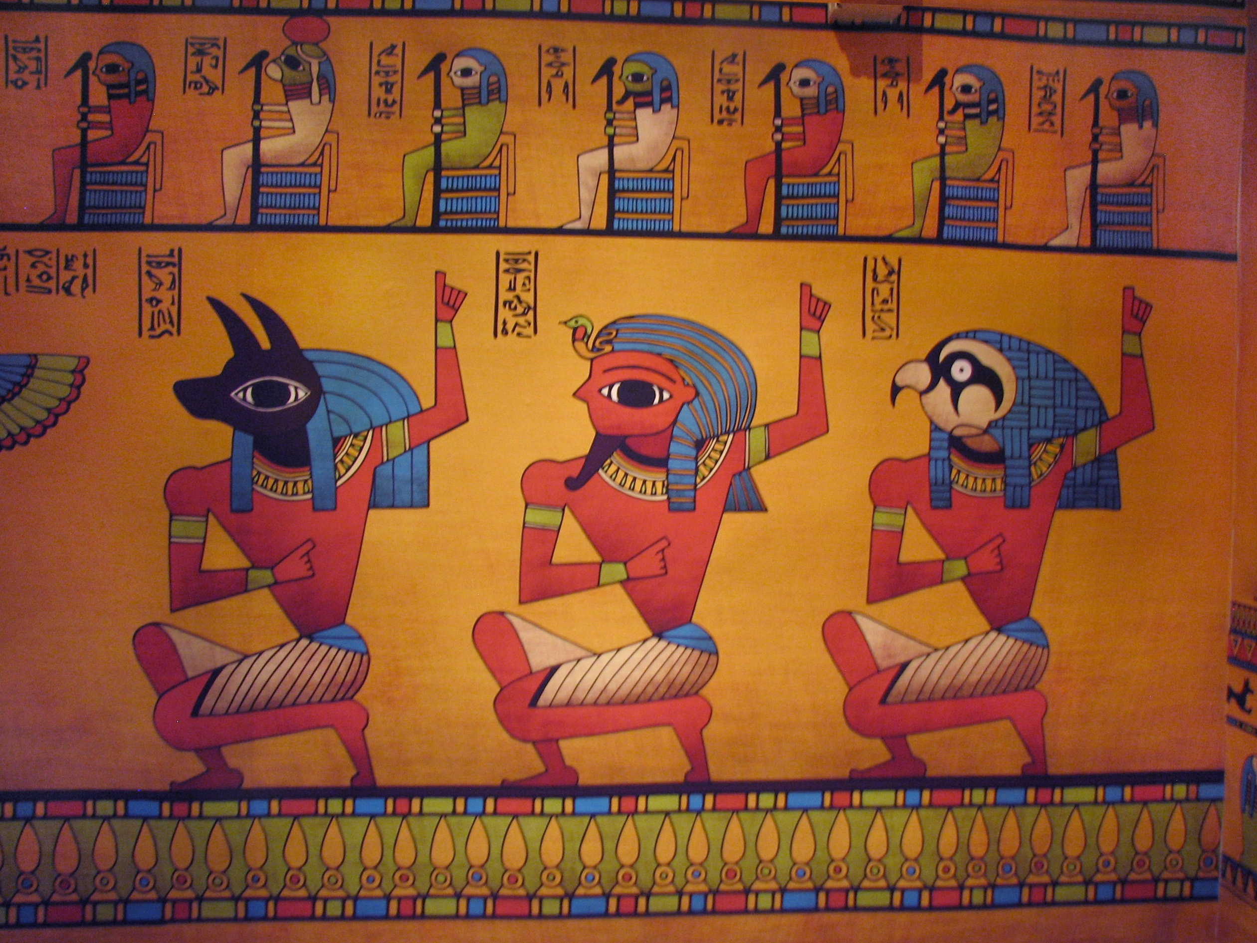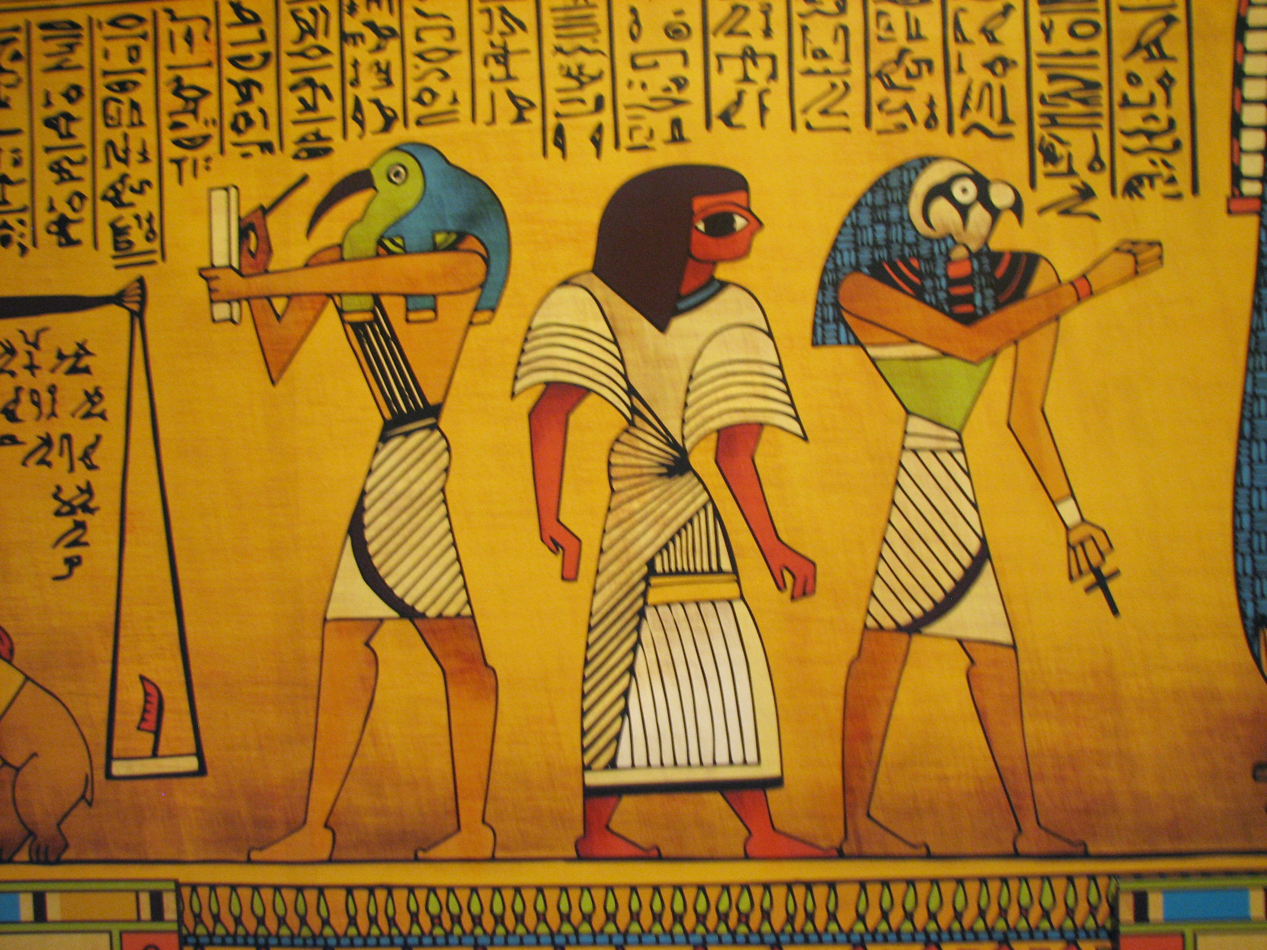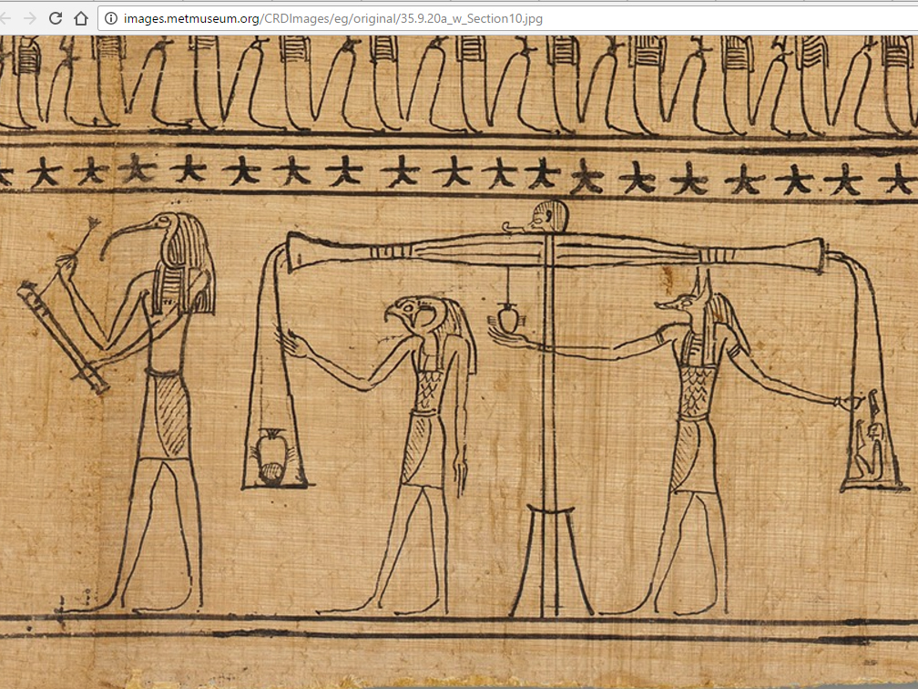 The mural was loosely based on similar scenes in the Book of the Dead, such as this one at Chicago's Oriental Museum: