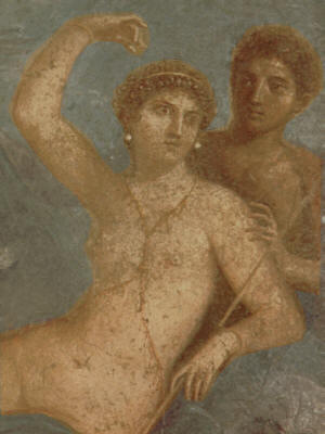 VENVS, known to the Etruscans as Turan and to the Greeks as Aphrodite, is honored as the Goddess of Love and Beauty and particularly as a great intercessor between the venerable Gods and Her earthly offspring in the line of Aeneas, said to be the ancestor of the Iulii. Her Latin name is connected with the words venia, divine favor, and venerari, to exert the power of charm. Q Fabius Gurges is reported to have dedicated the first temple to Venus Obsequens in 295 BCE, in appreciation for a victory given in battle against the Samnites. Similarly Her favor was sought when Sicily was contested between Rome and Carthage; Venus Erycina departed Sicilian Mt Eryx for a greater shrine at Rome, near the Porta Collina. She is known by many other epithets and aspects, among them: Felix, Victrix, Verticordia, Castina, and Genetrix. |
